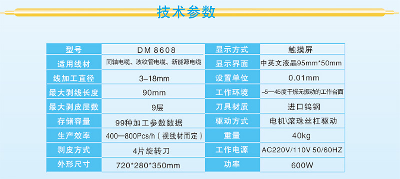 2.人机界面,操作简单易懂,多可剥9层,可存储多达99种加工数据。